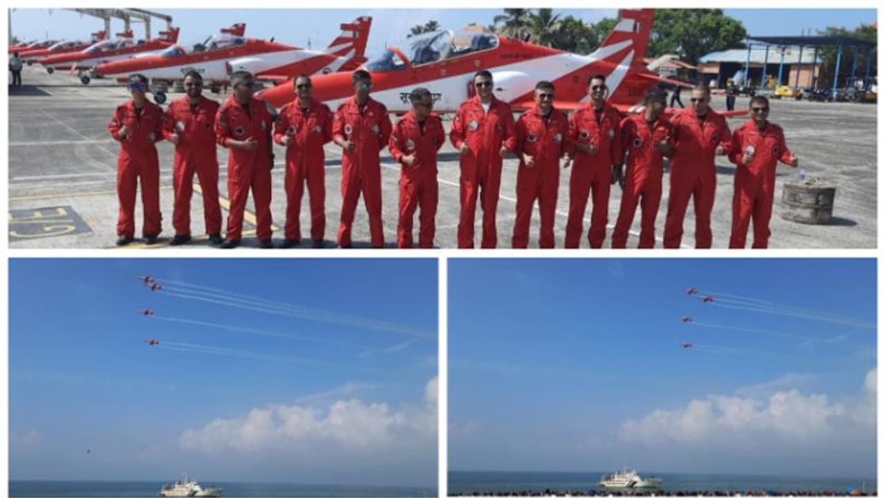 വ്യോമാഭ്യാസത്തിൽ കൃത്യതയുള്ള ക്ലോസ് ഫോർമേഷന്റെ ഉജ്ജ്വലവും ഗംഭീരവുമായ പ്രദർശനം, പ്രൊഫഷണലിസം, പരസ്പരം കഴിവുകളിലെ ആത്മവിശ്വാസം എന്നിവ തെളിയിക്കുന്ന പ്രകടനമായിരുന്നു അരങ്ങേറിയത്. ഇന്ത്യൻ വ്യോമസേനയുടെ അംബാസഡർമാർ എന്നറിയപ്പെടുന്ന സൂര്യ കിരൺ, ലോകത്തിലെ ഒമ്പത് എയർക്രാഫ്റ്റ് ഫോർമേഷൻ എയറോബാറ്റിക് ടീമുകളിൽ ഒന്നാണ് എന്ന പ്രത്യേകതയുമുണ്ട്. “സദൈവ് സർവോത്തം” (എല്ലായ്പ്പോഴും മികച്ചത്) എന്ന മുദ്രാവാക്യമുള്ള ടീമിന്റെ എയ്റോബാറ്റിക് ഡിസ്പ്ലേ, യുവാക്കളെ സേവനത്തിൽ ചേരാൻ പ്രചോദിപ്പിക്കുകയെന്ന ലക്ഷ്യത്തോടെ ഇന്ത്യൻ വ്യോമസേനയുടെ പ്രവർത്തന ശേഷി പ്രകടമാക്കി.