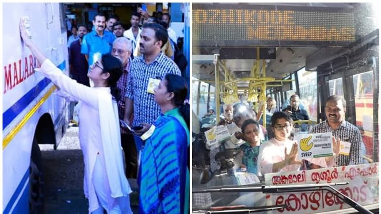 കളക്ടർ അനുപമയും അസി.കളക്ടർ പ്രേം കൃഷ്ണയും ഇലക്ഷന് വിഭാഗം ഡെപ്യൂട്ടി കളക്ടർ വിജയനും ബസുകളിൽ കയറിയിറങ്ങി വോട്ടവകാശം വിനിയോഗിക്കേണ്ടത് യാത്രക്കാരെ ഓർമ്മിപ്പിച്ചു.