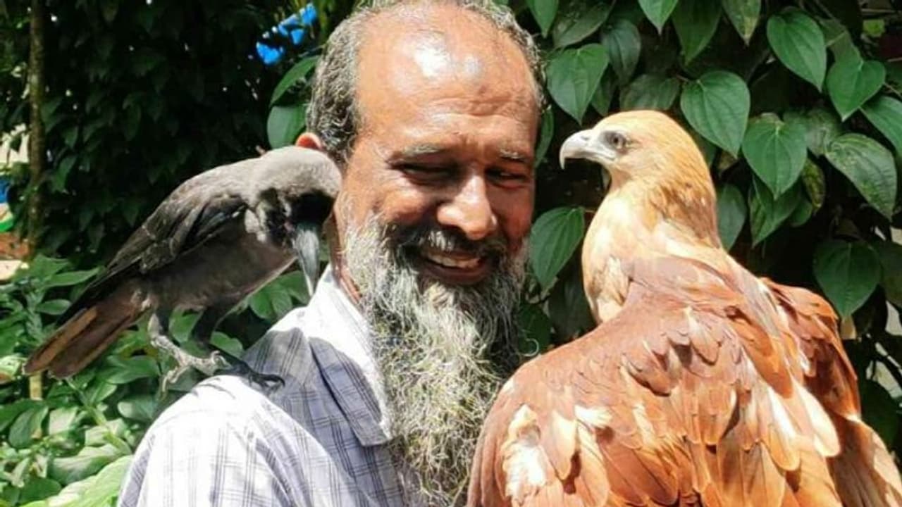 രണ്ട് മാസം മുമ്പാണ് മരം മുറി തൊഴിലാളിയായ റഷീദിന് പരിക്കേറ്റ നിലയിൽ കാക്കയെ ലഭിച്ചത്. തുടർന്ന് അതിന് വേണ്ട പരിചരണം നൽകി. പറക്കാനായതും കാക്ക പറന്നുപോകാതെ റഷീദിന്റെ കൂടെ ആയി. പരുന്തിനെയും റഷീദിന് പരിക്കേറ്റ നിലയിലാണ് ലഭിച്ചത്. വൈദ്യുതി കമ്പിയിൽ കുടുങ്ങിയ ഇതിനെയും പരിചരിച്ചു. അങ്ങനെ കാക്കയെ പോലെ റഷീദിന്റെ ഈ പരുന്തും ഇദ്ദേഹത്തെ വിടാതെ കൂടും.