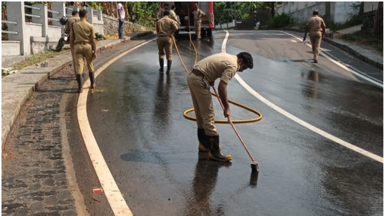 ലോറിയുടെ ഡീസല് ടാങ്കില് നിന്നുള്ള ഒരു വാല്വില് ലീക്ക് ഉണ്ടാവുകയായിരുന്നു. എന്നാല് ഡ്രൈവര് ഇതറിഞ്ഞില്ല. ഒരു കിലോമീറ്ററോളം ദൂരത്തില് ഡീസല് റോഡില് ഒഴുകിയിരുന്നു.