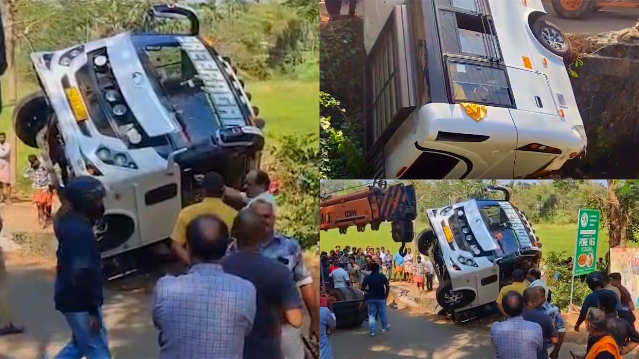 പാലക്കാട് ഒറ്റപ്പാലം മനിശേരി വരിക്കാശ്ശേരി മനയ്ക്ക് സമീപം ടൂറിസ്റ്റ് ബസ് നിയന്ത്രണം വിട്ട് തോട്ടിലേക്ക് മറിഞ്ഞ് അപകടം. ബസിലുണ്ടായിരുന്നവര് പരിക്കേൽക്കാതെ രക്ഷപ്പെട്ടു