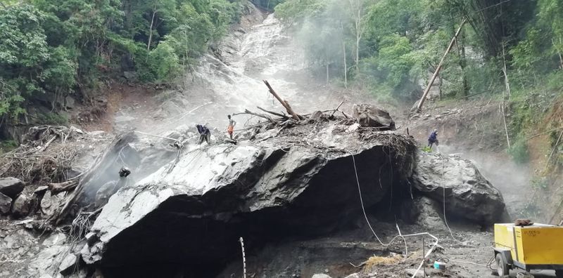 നാടുകാണി: അതിശക്തമായ മണ്ണിടിച്ചിലിൽ നാടുകാണി ചുരത്തിലേക്ക് വീണ വലിയ പാറക്കെട്ടുകൾ പൊട്ടിക്കുന്ന പണി ആരംഭിച്ചു. പാറ പൊട്ടിച്ച് കഴിയുന്നതോടെ ചെറുവാഹനങ്ങൾ കടത്തി വിടാനാകുമെന്നാണ് പ്രതീക്ഷ. ചുരം അടഞ്ഞതോടെ ഓണക്കാലത്ത് തമിഴ്നാട്ടില് നിന്നും പച്ചക്കറിയും പൂക്കളും എത്തിച്ചിരുന്ന വ്യാപാരികള് ഏറെ ബുദ്ധിമുട്ടിലായി.