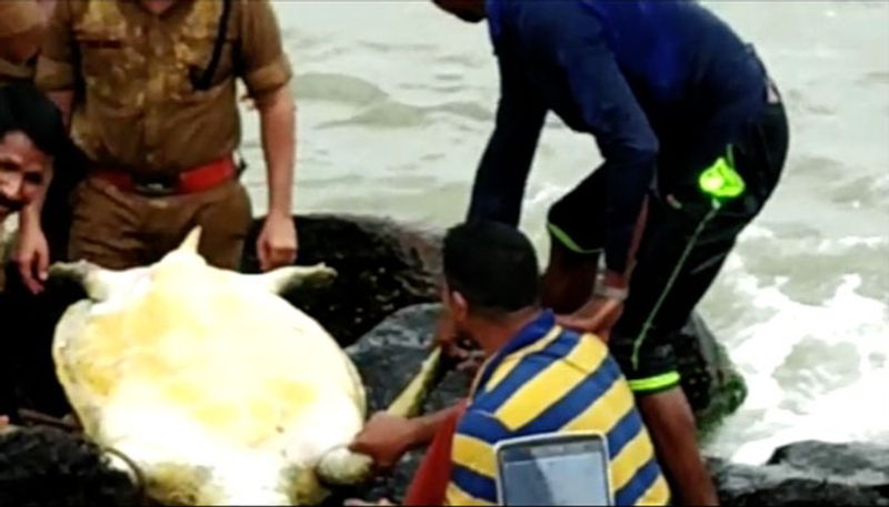 ശക്തമായ തിരമാലകൾക്കിടയിൽപ്പെട്ടതിനെ തുടര്ന്നാണ് കടലാമ പുലിമുട്ടിൽ കുടുങ്ങിയത്. രണ്ട് മണിക്കൂർ നീണ്ട രക്ഷാപ്രവർത്തനത്തിന് ഒടുവിലാണ് മോചനം സാധ്യമായത്