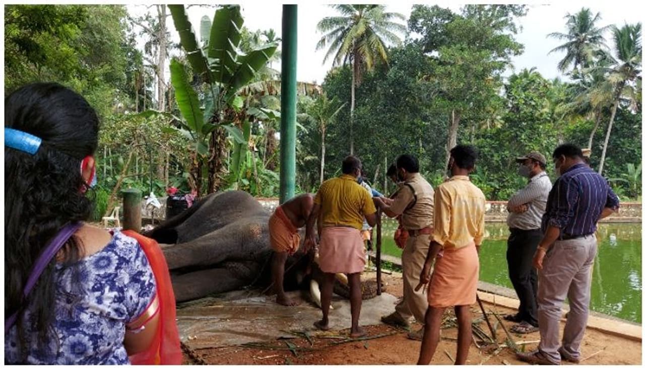 വനം വകുപ്പിന്റെയും ദേവസ്വം ജീവനക്കാരുടെയും നേതൃത്വത്തില് ചിപ്പ് സ്കാന് ചെയ്ത ശേഷം കൊമ്പിന്റെ അളവെടുത്തു രേഖയാക്കിയ ശേഷമായിരുന്നു നടപടി. ആനയുടെ കൊമ്പിന്റെ നീളം കാരണം തീറ്റ എടുക്കുന്നതിനും ആനക്ക് കിടക്കുന്നതിനും ഉള്പ്പടെ ബുദ്ധിമുട്ട് നേരിട്ടിരുന്നു. ഇതിന്റെ അടിസ്ഥാനത്തില് വാര്ത്തകള് പുറത്തു വന്നതോടെ നടപടികള് വേഗത്തിലായി. കൊമ്പ് മുറിക്കാന് വനം വകുപ്പ് അനുമതിയും നല്കി. എന്നാല് കഴിഞ്ഞ ആഴ്ച കൊമ്പ് മുറിക്കാന് എല്ലാ സന്നാഹങ്ങളും ഒരുങ്ങിയപ്പോള് വനം വകുപ്പ് ഓഫീസര് ദിവ്യ എസ് റോസ് കൊമ്പ് മുറിച്ച ശേഷം രാകി ക്രമപ്പെടുത്തണം എന്ന ആവശ്യത്തെ നിരാകരിച്ചു. ഇതു ആനപ്രേമികള് ഉള്പ്പെടെയുള്ളവരുടെ തര്ക്കത്തിനും മറ്റും കാരണമായിരുന്നു.