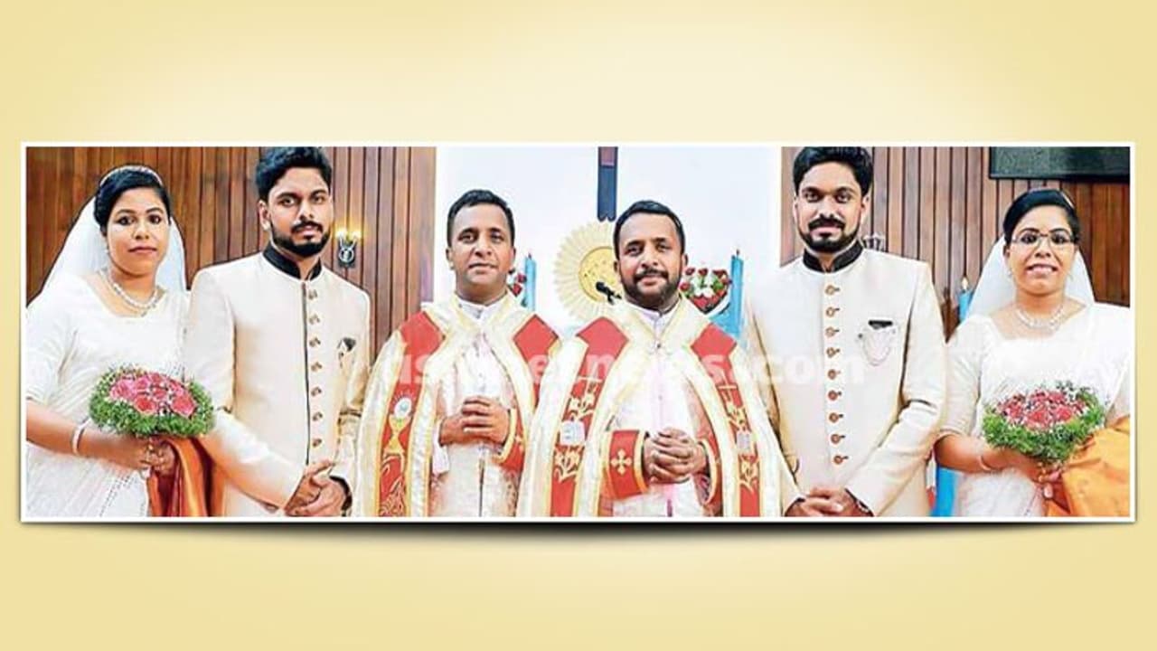 പേരാമ്പ്ര സെന്റ് ഫ്രാൻസിസ് പള്ളിയിൽ ഇന്നലെ നടന്ന വിവാഹത്തിൽ അജിത് അനിലയെയും ആനന്ദ് അമലയെയും മിന്നുകെട്ടി. ചങ്ങനാശേരി അതിരൂപതയിലെ വൈദികരായ ഫാ. ജസ്റ്റിൻ കുന്നംകുളത്തുശേരിയും ഫാ. ജെന്നി കുന്നംകുളത്തുശേരിയുമാണ് വിവാഹത്തിന് കാര്മികരായത്.