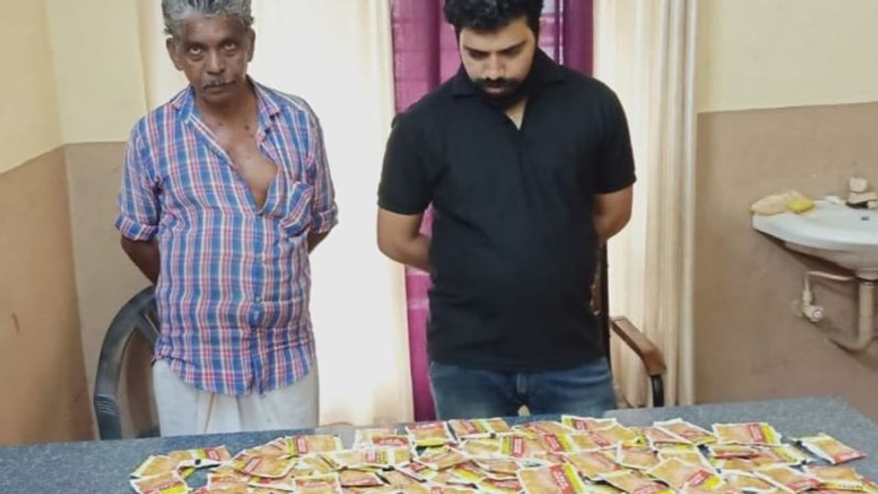 കോഴിക്കോട്: നൂറോളം പായ്ക്കറ്റ് നിരോധിത പുകയില ഉൽപ്പന്നമായ ഹാൻസുമായി രണ്ടു പേരെ താമരശ്ശേരി പൊലീസ് അറസ്റ്റ് ചെയ്തു. അടിവാരം പൊട്ടികയ്യിൽ നിധീഷ്, പുത്തൻവീട്ടിൽ തങ്കപ്പൻ എന്നിവരെയാണ് അടിവാരം പൊലീസ് ഔട്ട് പോസ്റ്റിന് സമീപം വെച്ച് അറസ്റ്റ് ചെയ്തത്. താമരശ്ശേരി എസ്.ഐ. ശ്രീജേഷ്, സീനിയർ സി.പി.ഒ സുജാത, സിപിഒമാരായ ബവീഷ്, ഷൈജൽ എന്നിവർ ചേർന്നാണ് ഇവരെ പിടികൂടിയത്. പ്രതികൾ ലഹരി വിൽപ്പനക്ക് ഉപയോഗിച്ച ബുള്ളറ്റും പിടികൂടി കോടതിയിൽ ഹാജരാക്കി.