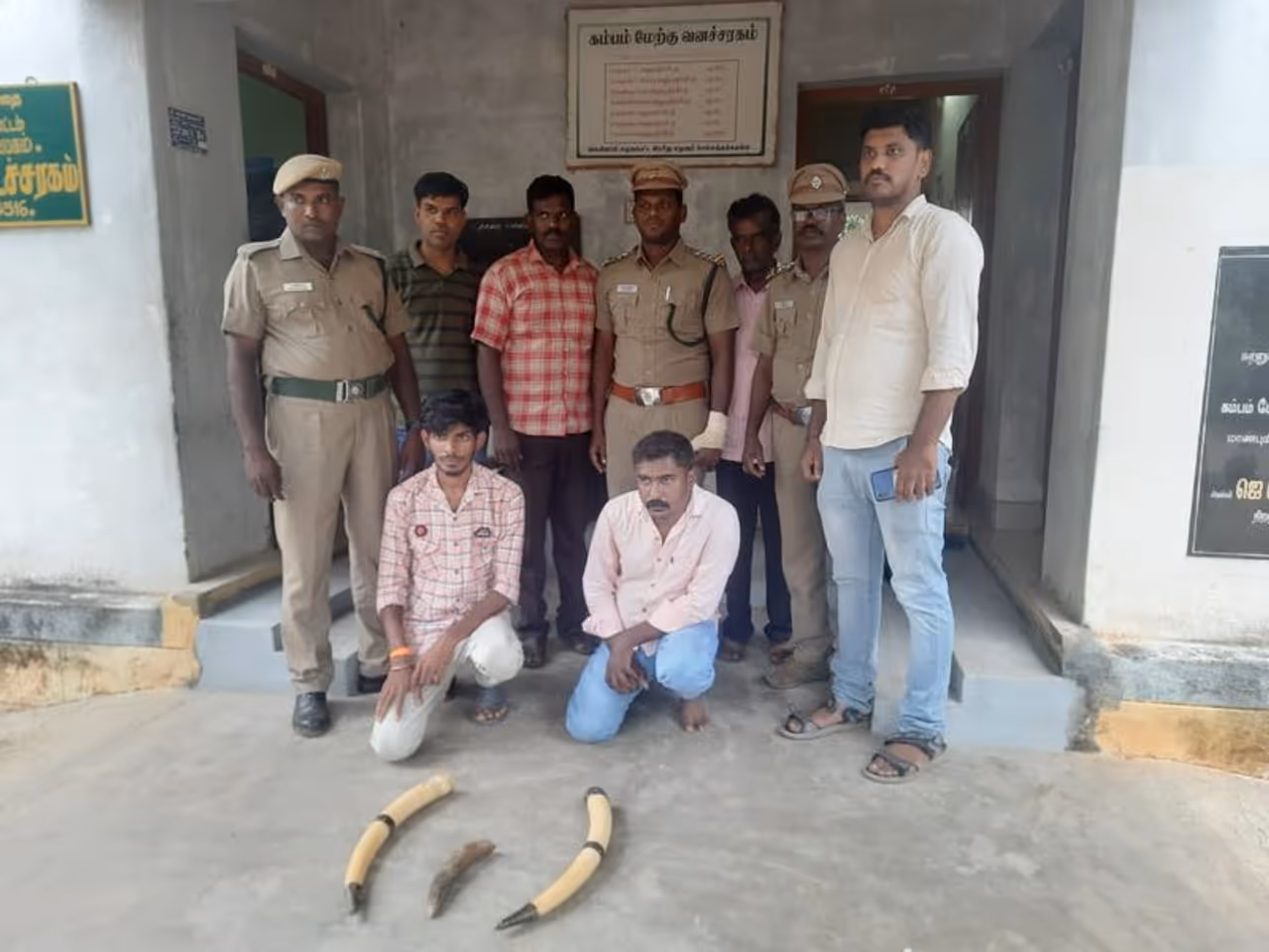 ഇതേ തുടര്ന്ന് സെന്ട്രല് വൈല്ഡ് ലൈഫ് ക്രൈം കണ്ട്രോള് ബ്യൂറോ ഇന്സ്പെക്ടര് രവീന്ദ്രന്റെ നേതൃത്വത്തില് കമ്പം വെസ്റ്റ് റെയ്ഞ്ച് വാര്ഡന് സ്റ്റാലിനും വനംവകുപ്പ് ഉദ്യോഗസ്ഥരും ബുധനാഴ്ച രാത്രി കമ്പം- കുമളി റോഡിൽ വാഹന പരിശോധന നടത്തി. ഈ സമയം കര്ണാടക രജിസ്ട്രേഷനിലുള്ള ബൈക്കിൽ സുരേഷും മുകേഷുമെത്തി. ഇവരുടെ പെരുമാറ്റത്തില് സംശയം തോന്നിയ ഉദ്യോഗസ്ഥര് കൈവശമിരുന്ന ബാഗ് പരിശോധിച്ചപ്പോഴാണ് ആനക്കൊമ്പുകള് കണ്ടെത്തിയത്.