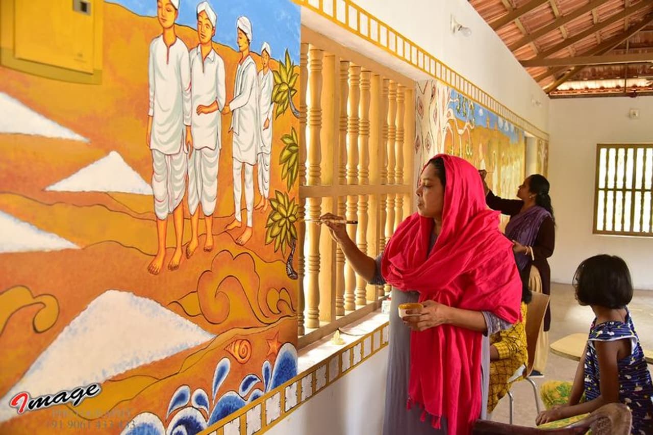 ഇന്ത്യൻ സ്വാതന്ത്ര്യ സമരത്തിലെ പ്രധാന ഏടുകളെല്ലാം ചുവരിനെ ക്യാൻവാസാക്കി വളയിട്ട കൈകൾ ചാലിച്ചെടുത്തിട്ടുണ്ട്. ഗുരുവായൂർ സത്യാഗ്രഹം, ഉപ്പുസത്യാഗ്രഹം, ദണ്ഡിയാത്ര, വാഗൺ ട്രാജഡി, കീഴരിയൂർ ബോംബ് കേസ്, മലബാർ കലാപം, ഗാന്ധിജി ശ്രീനാരായണ ഗുരുവിനെ സന്ദർശിച്ചത്. സ്വാമി വിവേകാനന്ദൻറെ കേരള സന്ദർശനം, ഭഗത് സിംഗ് തുടങ്ങിയ 17 ചിത്രങ്ങളാണ് വരച്ചതെന്ന് വരമുഖി വിമൻ ആർട്ട് കമ്മ്യൂണിൻറെ സ്ഥാപകയും ചിത്രകാരിയുമായ മജ്നി തിരുവങ്ങൂർ പറഞ്ഞു.