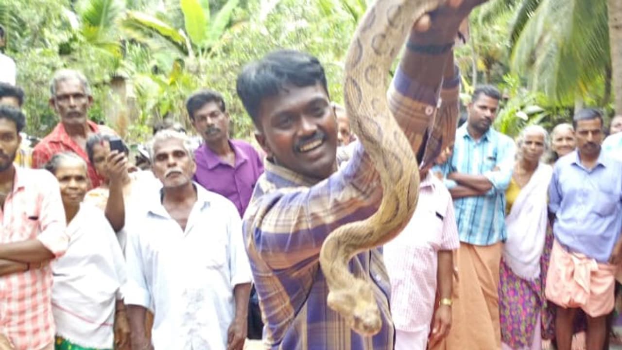വീട്ടുവളപ്പിലെ തെങ്ങിൻ ചുവട്ടിൽ ഓല എടുക്കുവാനായി ചെന്നപ്പപ്പോൾ പാമ്പിനെ കണ്ട് ഭയന്ന വീട്ടമ്മ അറിയിച്ചതോടെ അയല്ക്കാര് ഓടിയെത്തി