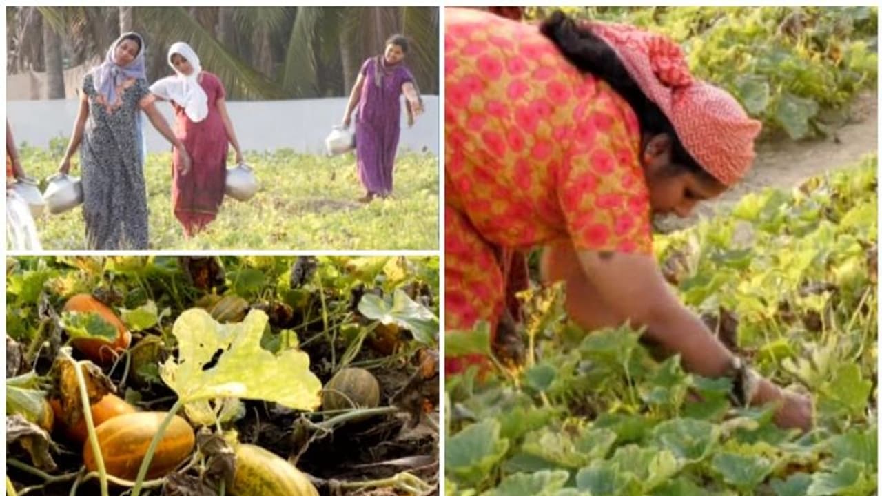 അന്പത് ക്വിന്റല് കുമ്പളം, മുപ്പത് ക്വിന്റല് വെള്ളരി, ഒരു ക്വിന്റല് പച്ചമുളക് അങ്ങനെ പോകുന്നു വിളവ് . വിത്തിറക്കിയതു മുതല് എല്ലാ ദിവസവും വൈകുന്നേരം മൂന്ന് മണി മുതല് ആറ് മണി വരെ ഒരേ മനസ്സോടെ ഒറ്റക്കെട്ടായി ഇരുന്നൂറ് പേരും പണിയെടുത്തുണ്ടാക്കിയത് നൂറുമേനി.