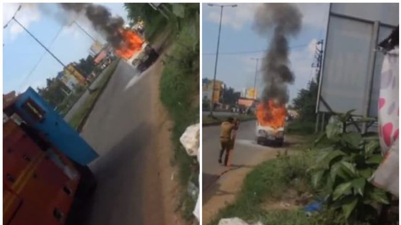 കൊച്ചിയില് ഒംനി വാനിന് ഓടികൊണ്ടിരിക്കുമ്പോൾ തീപ്പിടിച്ചു.