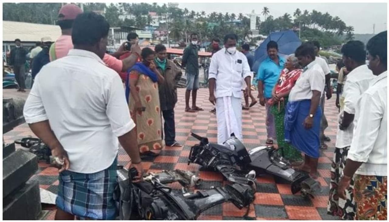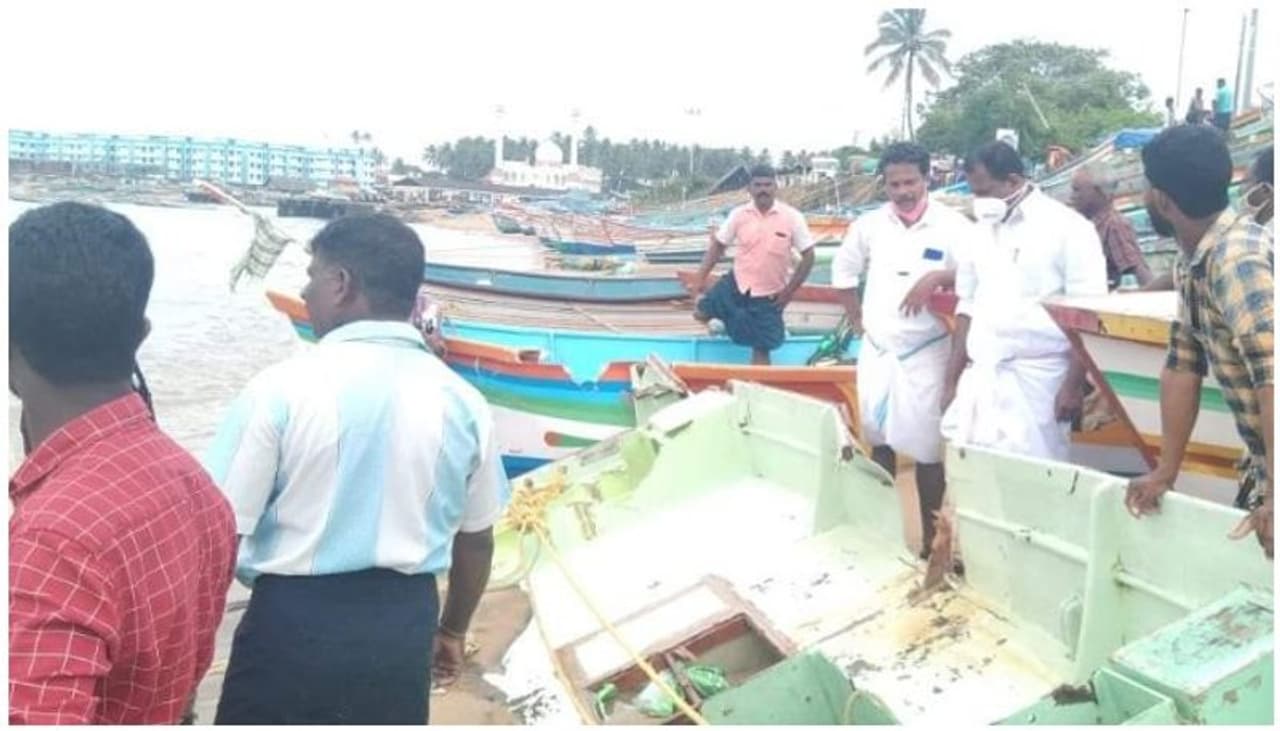 തുറമുഖത്ത് സുരക്ഷിത സ്ഥാനങ്ങളില് നങ്കൂരമിട്ടു നിര്ത്തിയ വള്ളങ്ങളാണ് തകര്ന്നത്. രാത്രിയോടെ വീശിയടിച്ച കാറ്റില് വടങ്ങളില് ബന്ധിച്ച വള്ളങ്ങള് നങ്കൂരം തകര്ത്ത് കരയിലേക്ക് ഇടിച്ച് കയറി പരസ്പരം കൂട്ടി ഇടിച്ച് തകര്ന്നു. വലകളും ഔട്ട് ബോര്ഡ് എന്ജിനുകളും മണലിനടിയിലായി.
