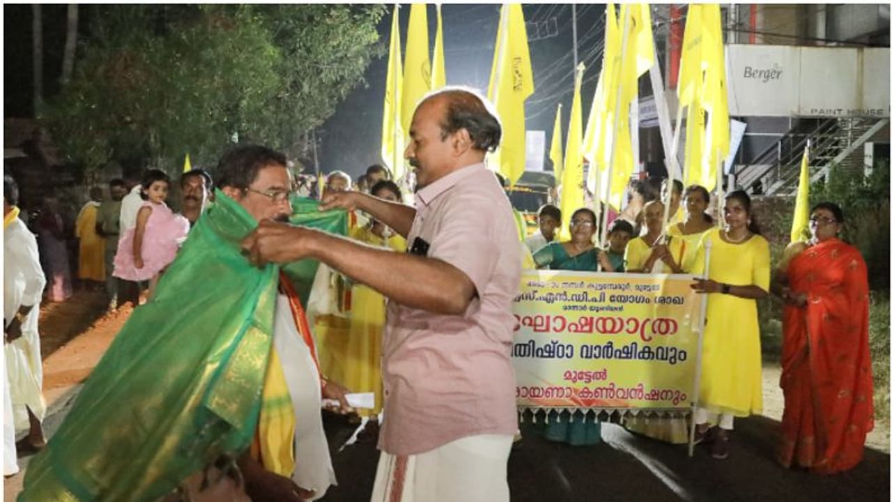 കുട്ടംപേരൂർ മുട്ടേൽ മസ്ജിദിനു മുന്നിലും മുട്ടേൽ സെന്റ്മേരീസ് ഓർത്തഡോക്സ് ചർച്ചിന് മുന്നിലുമാണ് സ്വീകരണം നല്കിയത്