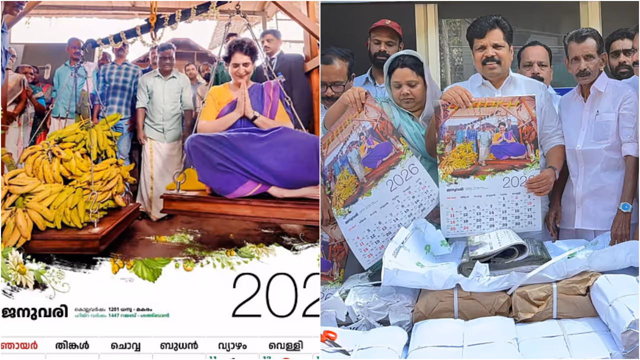 വയനാട് എംപി പ്രിയങ്ക ഗാന്ധിയുടെ ചിത്രങ്ങൾ ഉൾപ്പെടുത്തി കോൺഗ്രസ് പാർട്ടി പുതുവത്സര കലണ്ടർ പുറത്തിറക്കി. എംപിയായതിന് ശേഷം പ്രിയങ്ക വയനാട്ടിൽ നടത്തിയ യാത്രകളും, തുലാഭാരം നടത്തുന്നതും ആനയ്ക്ക് ഭക്ഷണം നൽകുന്നതുമടക്കമുള്ള നിമിഷങ്ങളാണ് കലണ്ടറിലുള്ളത്.