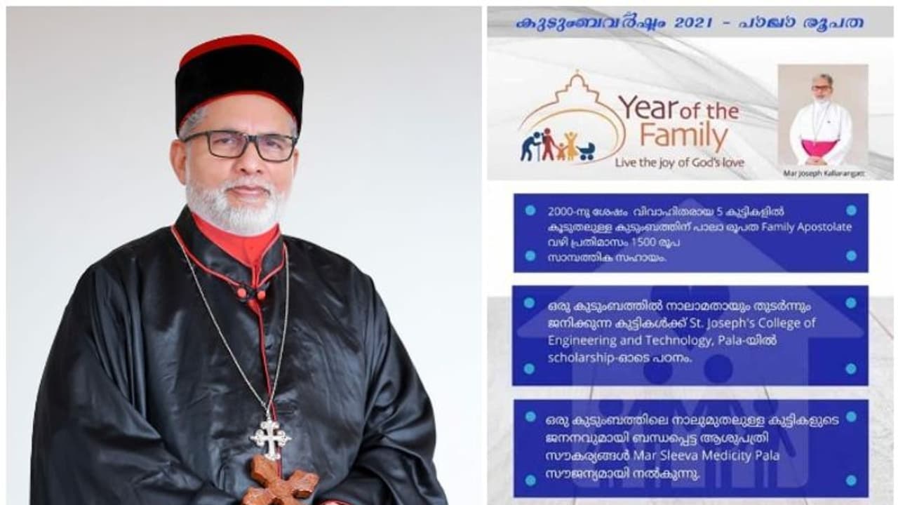 എന്നാൽ ആ നിലപാടിൽത്തന്നെ മെത്രാൻ ഉറച്ച് നിൽക്കുകയാണ്. അഞ്ച് കുട്ടികളുണ്ടെങ്കില് വമ്പൻ ഓഫറാണ് പാലാ രൂപത വാഗ്ദാനം ചെയ്യുന്നത്. 2000-ത്തിന് ശേഷം വിവാഹിതരായ അഞ്ചു കുട്ടികളില് കൂടുതല് ഉള്ള കുടുംബത്തിന് പ്രതിമാസം 1500 രൂപ സാമ്പത്തിക സഹായം നല്കും. ഒരു കുടുംബത്തില് നാലാമതായും തുടര്ന്നും ജനിക്കുന്ന കുട്ടികള്ക്ക് പാലായിലെ സെന്റ് ജോസഫ് കോളേജ് ഓഫ് എന്ജിനീയറിംഗ് ആന്ഡ് ടെക്നോളജിയില് സ്കോളര്ഷിപ്പോടെ പഠനം ലഭിക്കും. ഒരു കുടുംബത്തില് നാല് മുതലുള്ള കുട്ടികളുടെ ജനനവുമായി ബന്ധപ്പെട്ട ആശുപത്രി സൗകര്യങ്ങള് രൂപതയ്ക്ക് കീഴിലെ മാര് സ്ലീവ മെഡിസിറ്റി സൗജന്യമായി നല്കും. 'പാലാ രൂപതയുടെ കുടുംബ വര്ഷം 2021'ന്റെ ഭാഗമായാണ് പദ്ധതികള് പ്രഖ്യാപിച്ചത്.