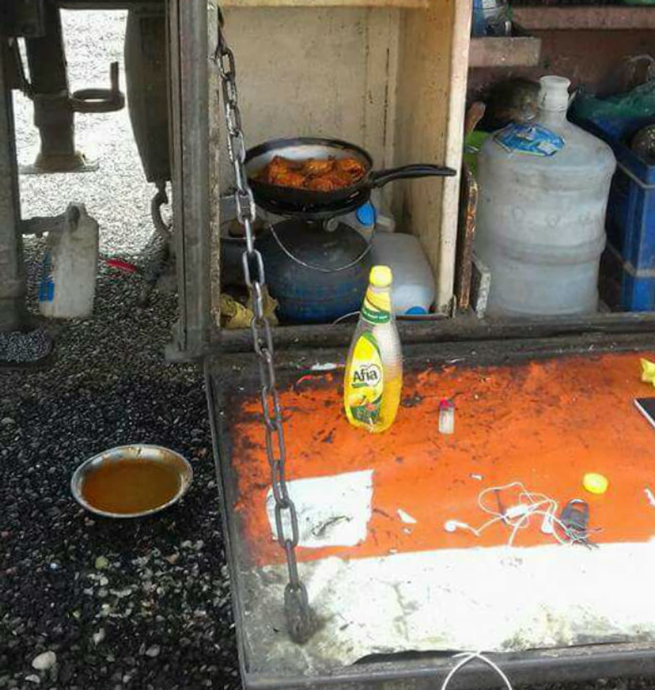 എത്ര തളര്ന്നാലും ട്രക്കിനടിയില് ഘടിപ്പിച്ചിരിക്കുന്ന അടുക്കളസാധനങ്ങള് സൂക്ഷിച്ച ബോക്സില് നിന്ന് ചെറിയ ഗ്യാസ് അടുപ്പ് പുറത്തെടുക്കും.