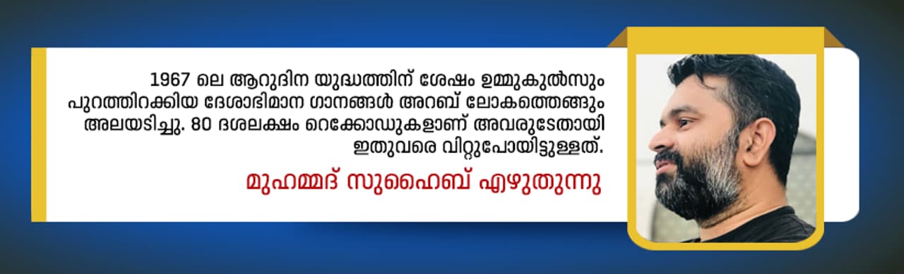 ആറുദിന യുദ്ധത്തിന് ശേഷം ഉമ്മുകുൽസും പുറത്തിറക്കിയ ദേശാഭിമാന ഗാനങ്ങൾ അറബ് ലോകത്തെങ്ങും അലയടിച്ചു