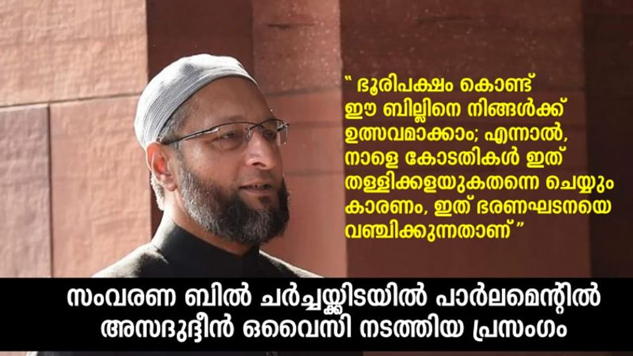 ഒവൈസി : ഇനി പറയാന് പോവുന്ന കാരണങ്ങളാല് ഞാനീ ബില്ലിനെ ശക്തിയുക്തം എതിര്ക്കുകയാണ്.