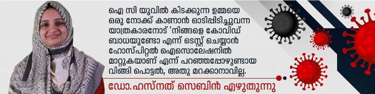 അന്ന് കൂടെ ഡ്യൂട്ടി എടുത്തു കൊണ്ടിരുന്ന് ഇപ്പൊ വീട്ടില് ക്വാറന്റൈനില് കഴിയുന്ന റിന്സി സിസ്റ്റര് വിളിച്ചു, മാഡം ചെറിയ ഒരു ജലദോഷം, ചുമ വരുന്നത് പോലെയൊക്കെ. എ സിയില് ഡ്യൂട്ടി എടുത്തതിന്റെ ആവും അല്ലെ?'
