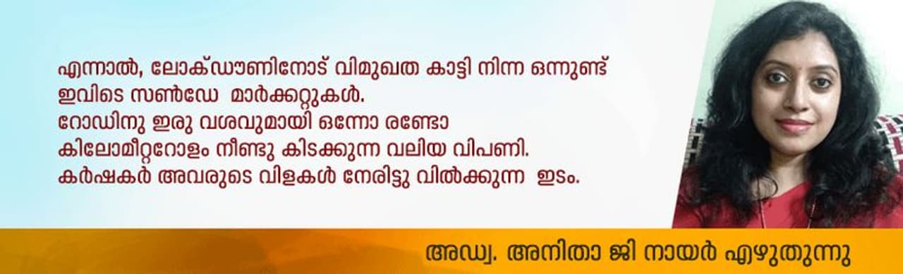 വരുന്നത് എന്തും നേരിടുക എന്ന മനോഭാവത്തില് ആണ് 70 ശതമാനം ആളുകളും. അടഞ്ഞുകിടക്കലിന്റെ ലോകം അത്ര സുരക്ഷിതമല്ല എന്ന ബോധത്തില് തന്നെ പുറംലോകത്തേക്ക് എത്തിയിരിക്കുായാണ് ആളുകള്. അതിന്റെ പ്രതിഫലനം സണ്ഡേ മര്ക്കറ്റിലും കാണാം. ലോക് ഡൗണ് ഇളവിന് ശേഷം അവിടേക്ക് എത്തുന്ന ആളുകളുടെ എണ്ണം പഴയതു പോലെ ആയി. പ്രഭാത സവാരിക്ക് ശേഷം മടങ്ങുന്നവര് കയ്യില് പച്ചക്കറികള്ക്കായി ഒരു സഞ്ചിയും കൂടി കരുതിയാണ് എത്തുന്നത്. സ്ഥിരം കച്ചവടക്കാര് ആയതു കൊണ്ട് തന്നെ പലര്ക്കും സ്ഥിരം കസ്റ്റമേഴ്സ് ഉണ്ട്. അവരോടു കൊറോണ കാലത്തെ വിശേഷങ്ങള് പങ്കുവെച്ചാണ് ഇപ്പോള് കച്ചവടം.