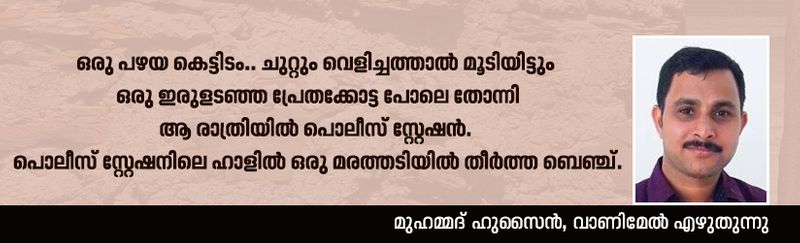 ഒരു പഴയ കെട്ടിടം.. ചുറ്റും വെളിച്ചത്താൽ മൂടിയിട്ടും ഒരു ഇരുളടഞ്ഞ പ്രേതക്കോട്ട പോലെ തോന്നി ആ രാത്രിയിൽ പൊലീസ് സ്റ്റേഷൻ. പൊലീസ് സ്റ്റേഷനിലെ ഹാളിൽ ഒരു മരത്തടിയിൽ തീർത്ത ബെഞ്ച്. ഞങ്ങളോട് അതിൽ ഇരിക്കാൻ പറഞ്ഞിട്ട് മാനേജരും കഫീലും അകത്തു പോയി. ഇടക്ക് പലരെയും കൊണ്ട് വരുന്നുണ്ടായിരുന്നു. കണ്ടാൽ പേടി തോന്നുന്ന പ്രതികള്. ഞങ്ങളെ തന്നെ തുറിച്ചു നോക്കി കൊണ്ട് ഭീമാകാരന്മാരായ പോലീസുകാർ..