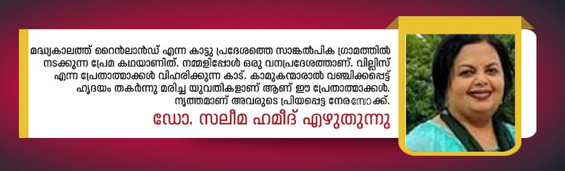 മദ്ധ്യകാലത്ത് റൈന്ലാന്ഡ് എന്ന കാട്ടു പ്രദേശത്തെ സാങ്കല്പിക ഗ്രാമത്തില് നടക്കുന്ന പ്രേമ കഥയാണിത്. നമ്മളിപ്പോള് ഒരു വനപ്രദേശത്താണ്. വില്ലിസ് എന്ന പ്രേതാത്മാക്കള് വിഹരിക്കുന്ന കാട്. കാമുകന്മാരാല് വഞ്ചിക്കപ്പെട്ട് ഹൃദയം തകര്ന്നു മരിച്ച യുവതികളാണ് ആണ് ഈ പ്രേതാത്മാക്കള്. നൃത്തമാണ് അവരുടെ പ്രിയപ്പെട്ട നേരമ്പോക്ക്.