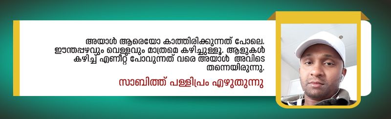 അയാള് ആരെയോ കാത്തിരിക്കുന്നത് പോലെ. ഈന്തപ്പഴവും വെള്ളവും മാത്രമെ കഴിച്ചുള്ളൂ. ആളുകള് കഴിച്ച് എണീറ്റ് പോവുന്നത് വരെ അയാള് അവിടെ തന്നെയിരുന്നു.