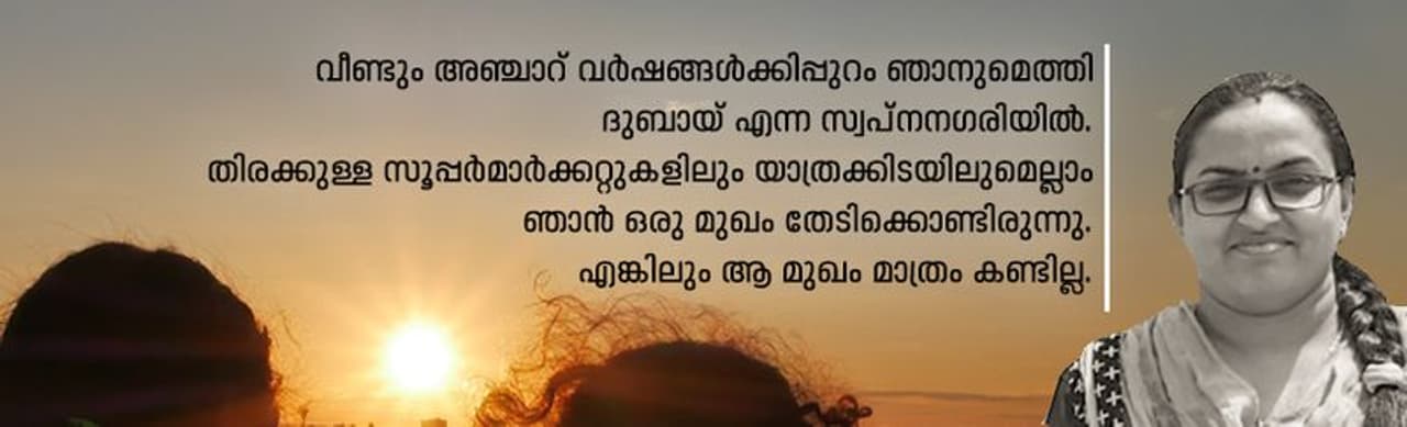 വീണ്ടും അഞ്ചാറ് വർഷങ്ങൾക്കിപ്പുറം ഞാനുമെത്തി ദുബായ് എന്ന സ്വപ്നനഗരിയിൽ. തിരക്കുള്ള സൂപ്പർമാർക്കറ്റുകളിലും യാത്രക്കിടയിലുമെല്ലാം ഞാൻ ഒരു മുഖം തേടിക്കൊണ്ടിരുന്നു. എങ്കിലും ആ മുഖം മാത്രം കണ്ടില്ല. ജോലിയുടെ തിരക്കുകളിൽ നിന്നൊഴിവുകിട്ടിയ ഒരു ദിവസം വെറുതെ മനസ്സിലേക്ക് അവൾ എത്തി.
