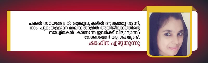 പെണ്ണ് എന്ന നിലയിൽ ചുറ്റുപാടുകളിൽ നിന്നുള്ള സദാചാരക്ലാസുകളും, നരകത്തിലെ തീ സംഭാഷണങ്ങളും, സമൂഹത്തിലെ ഒച്ചപ്പാടുകളുമെല്ലാം ഇവര്ക്ക് മുമ്പിൽ എത്ര നിസാരമാണ്. മാറുന്ന സര്ക്കാരുകളും വാഗ്ദാനങ്ങള് ഒരുപാട് നല്കുമ്പോള് അതൊന്നും ലഭിക്കാതിരിക്കുമ്പോഴും പ്രാപ്യമാകുന്ന വിദ്യാഭ്യാസമെങ്കിലും നേടണം, ചൂഷണത്തെ പ്രതിരോധിക്കണം എന്നൊക്കെ ചിന്തിക്കുന്ന ഈ പെണ്ണുങ്ങൾ തന്നെയാണ് ശരിക്കും ധൈര്യത്തോടെ ജീവിക്കാൻ എനിക്കിപ്പോള് പ്രേരണ നൽകുന്നത്.