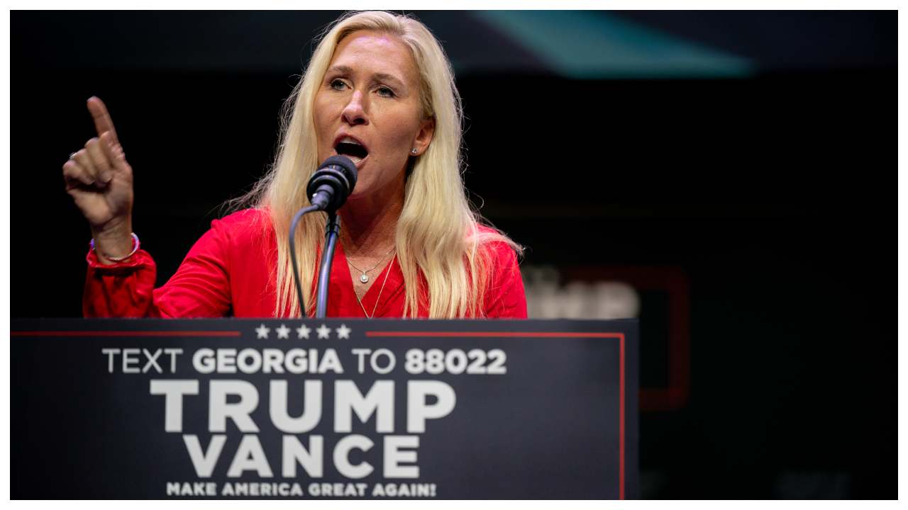 (2024 -ലെ തെരഞ്ഞെടുപ്പിനിടെ ട്രംപിന് വേണ്ടി പ്രചാരണം നടത്തുന്ന മാർജോറി ഗ്രീൻ)
