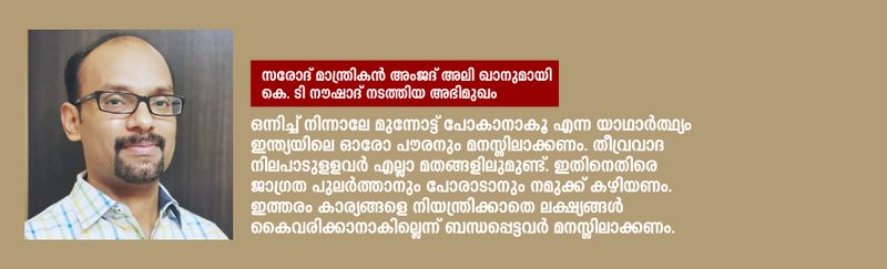 മതങ്ങള് വ്യത്യസ്തമാണെങ്കിലും ഇന്ത്യയിലെ ജനങ്ങള് പരസ്പരാശ്രിത ജീവിതം നയിക്കുന്നവരാണ്. എന്റെ സംഗീത ഉപകരണം പോലും ആശ്രിതത്വത്തിന്റെ ഉദാഹരണമാണ്. മിയാ താന്സെന് സ്വാമി ഹരിദാസിന്റെ ഗുരുവായിരുന്നു. ഈ ആശ്രിതത്വമാണ് നമ്മുടെ ശക്തി. ഒന്നിച്ച് നിന്നാലേ മുന്നോട്ട് പോകാനാകൂ എന്ന യാഥാര്ത്ഥ്യം ഇന്ത്യയിലെ ഓരോ പൗരനും മനസ്സിലാക്കണം. തീവ്രവാദ നിലപാടുളളവര് എല്ലാ മതങ്ങളിലുമുണ്ട്. ഇതിനെതിരെ ജാഗ്രത പുലര്ത്താനും പോരാടാനും നമുക്ക് കഴിയണം. ഇത്തരം കാര്യങ്ങളെ നിയന്ത്രിക്കാതെ ലക്ഷ്യങ്ങള് കൈവരിക്കാനാകില്ലെന്ന് ബന്ധപ്പെട്ടവര് മനസ്സിലാക്കണം.