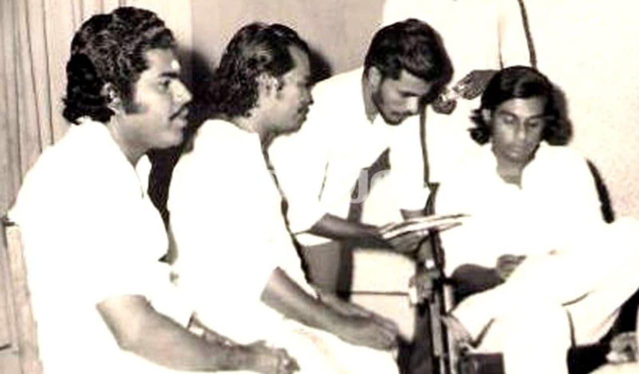 കണ്ണൂർ രാജൻ, ഗുണസിങ്, എസ്. രാജേന്ദ്ര ബാബു എന്നിവർ റെക്കോഡിങ്ങിനിടയില്