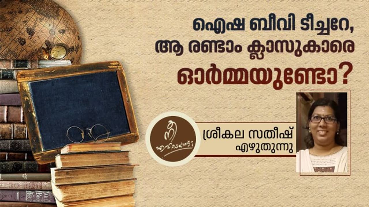 പ്രാഥമിക വിദ്യാഭ്യാസം മാത്രമാണ് പുതുവേലി ഗവ. ഹൈസ്കൂളെന്ന എന്റെ ഗ്രാമത്തിലെ ആ വിദ്യാലയത്തിൽ നിന്ന് ഞാൻ നേടിയത്. ടീച്ചറിപ്പോള് എവിടെയാണ് എന്നറിയില്ല.. പക്ഷേ, ഐഷ ടീച്ചറെ ഒന്നുകൂടി എനിക്ക് കാണണം. പഴയ ആ രണ്ടാം ക്ലാസുകാരി പഠിത്തക്കുട്ടിയായിട്ട്...
