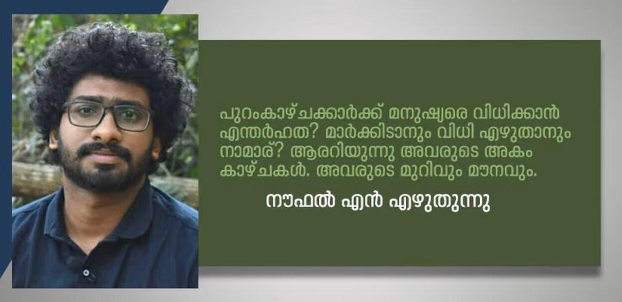 പുറം കാഴ്ചക്കാർക്ക് മനുഷ്യരെ വിധിക്കാൻ എന്തർഹത? മാർക്കിടാനും വിധി എഴുതാനും നാമാര്? ആരറിയുന്നു അവരുടെ അകം കാഴ്ചകൾ. അവരുടെ മുറിവും മൗനവും.