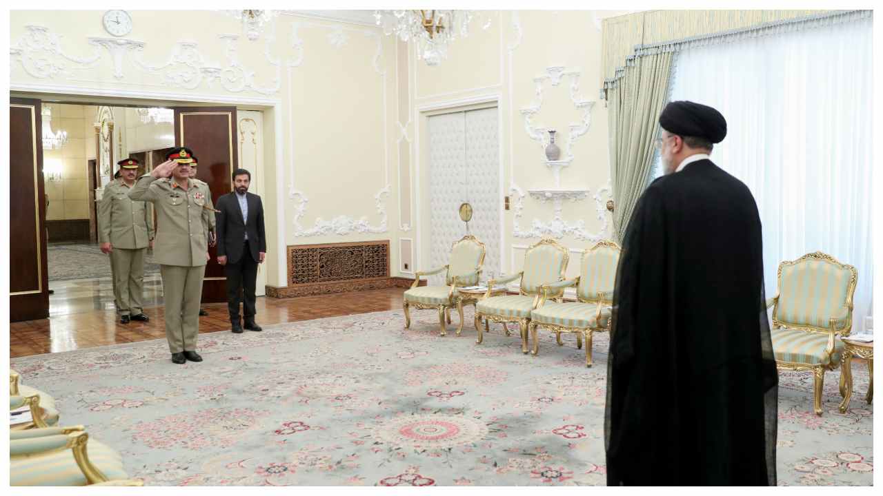 (ഇറാനിയൻ പ്രസിഡന്റ് ഇബ്രാഹിം റൈസിയെ സല്യൂട്ട് ചെയ്യ്ത് അഭിവാദ്യം അർപ്പിക്കുന്ന പാകിസ്ഥാൻ സൈനിക തലവൻ അസിം മുനീർ.)