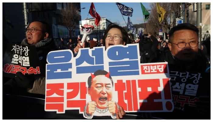 (പ്രസിഡന്റ് യൂൺ സോക് യോളിനെതിരെ സമരം ചെയ്യുന്നവര്)