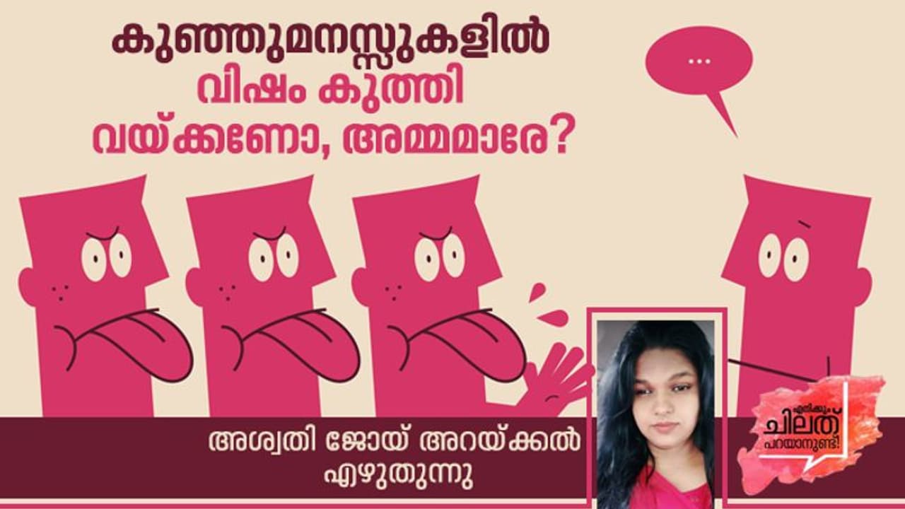'എന്തൊക്കെയാ ചേച്ചി പറയുന്നത്, കുഞ്ഞും ഇതൊക്കെ കേട്ട് പഠിക്കില്ലേ' എന്ന് ചോദിച്ച് അവരെയൊന്നു പറഞ്ഞ് മനസ്സിലാക്കാന് ഞങ്ങള് ഒന്നുരണ്ടുപേര് ശ്രമിച്ചെങ്കിലും തെറ്റ് അംഗീകരിക്കാനോ, തിരുത്താനോ അവര് തയ്യാറായിരുന്നില്ല. അവര് മാത്രമല്ല അവരുടെയാ ക്രൂരമായ സംസാരത്തില് പങ്കുചേര്ന്ന പലര്ക്കും കുഞ്ഞ് പറഞ്ഞതോ, കുഞ്ഞിന്റെ അമ്മ കൂട്ടിച്ചേര്ത്ത കമന്റോ തെറ്റായി തോന്നിയില്ല എന്നതാണ് സത്യം. എത്ര ക്രൂരമല്ലേ?