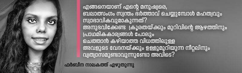 എനിക്കും ചിലത് പറയാനുണ്ട്. കിടപ്പറയിലെ ബലാല്സംഗങ്ങള്. ഫര്ബീന നാലകത്ത് എഴുതുന്നു