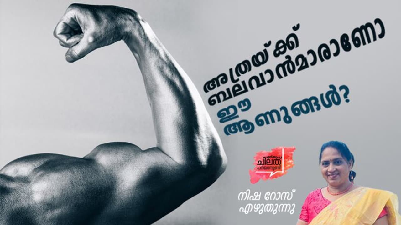 ശരീരപ്രകൃതിയില് ഉള്ള വ്യത്യാസം കാരണമാവണം പുരുഷന് ബലവാന് എന്ന് കാലങ്ങളായി ധരിച്ചു വെച്ചിരിക്കുകയാണ്. ഒരു പരിധി വരെ അത് ശരി തന്നെ. പക്ഷേ മസില് ശരീരത്തിനുള്ളില് പല പുരുഷന്മാര്ക്കുമുള്ളത് ദുര്ബലമായ മനസാണ്. താന് ഒരു ദുര്ബലഹൃദയന് ആണെന്ന് സ്ത്രീകള് അറിയാന് അവനിലെ പുരുഷമേധാവിത്തം അനുവദിക്കുന്നില്ല. ഒന്ന് പൊട്ടിക്കരയാന് സമൂഹം അവനെ അനുവദിക്കുന്നില്ല. അതിനാലാവണം, നല്ല അഭിനേതാവ് ആകേണ്ടി വരുന്നുണ്ട്, പല പുരുഷന്മാരും തലമുറകളായി.