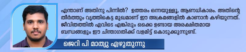 കാമുകിയെ കൊല്ലാന് കത്തിയോങ്ങുന്നവരുടെ മനസ്സിലിരിപ്പ് എന്താണ്? പുത്തന് വേലിക്കര പ്രസന്േറഷേന് കോളജ് ഓഫ് അപ്ലൈഡ് സയന്സസിലെ സൈക്കോളജി അധ്യാപകന് ജെറി പി മാത്യു എഴുതുന്നു
