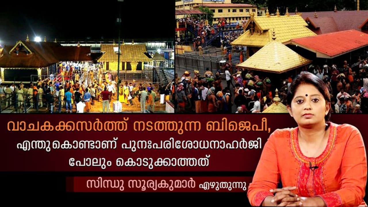 പിണറായി വിജയന്റെ സർക്കാർ പുനഃപരിശോധനാഹർജി കൊടുക്കാത്തതിൽ പി.എസ്. ശ്രീധരൻപിള്ളയ്ക്കും ബിജെപിയ്ക്കും കടുത്ത അമർഷമുണ്ട്. പക്ഷേ, അമർഷം കാണിച്ചുകൊണ്ടിരിക്കുകയേ ഉള്ളൂ. സ്വന്തമായി പുനഃപരിശോധനാഹർജിയൊന്നും ബിജെപിയും ആർഎസ്എസ്സും കൊടുക്കില്ല. പിണറായി വിജയൻ നിയമം പാസ്സാക്കി സുപ്രീം കോടതിയെ മറികടക്കണം എന്നതിൽ പി.എസ്. ശ്രീധരൻ പിള്ളയ്ക്ക് ഒരു സംശയവുമില്ല. അത് ചെയ്യില്ല എന്ന് പിണറായി പറഞ്ഞു കഴിഞ്ഞു. എന്നാൽ, ആ ഓർഡിനൻസ് കേന്ദ്രസർക്കാർ കൊണ്ടുവരട്ടെയെന്ന് ശ്രീധരൻപിള്ള ഒരിക്കലും ആവശ്യപ്പെട്ടിട്ടില്ല.