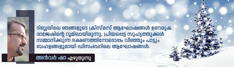 രാജേഷിന്റെ "അൽഖദീം എ സി റിപ്പയറിങ്" ബോർഡുള്ള പിക്ക് അപ്പ് വാഹനത്തിൽ ഞങ്ങൾ ബസാറിലേക്ക് ഇറങ്ങും. രാജേഷും അഖിലും സുനിലും മുഹാഷും റഫീഖ് പ്രവാസിയും ഇടക്കൊക്കെ സംവിധായകൻ ആസിഫും തബ്രീസും ഡിസംബറിലെ ആഘോഷങ്ങളിലെ താരങ്ങളാണ്. സുനിൽ ഉണ്ടാകുന്ന ബിരിയാണി, രാജേഷ് സംഘടിപ്പിക്കുന്ന വീഞ്ഞ്. അഖിലിന്റെ നാടൻപാട്ട്, മുഹാഷിന്റെ മാപ്പിള പാട്ട്, തബ്രീസിന്റെ രാഷ്ട്രീയം... എത്ര സുന്ദരമായിരുന്നു കഴിഞ്ഞ ഡിസംബർ വരെയുള്ള ഓരോ ക്രിസ്മസ് ആഘോഷങ്ങളും.