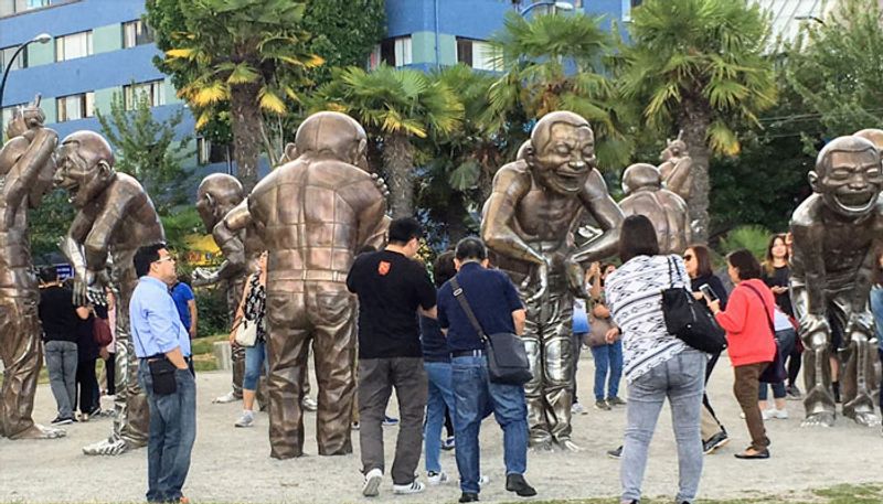 ഇനുക്ഷക്ക് (Inukshuk) എന്ന് പേരുള്ള ഒരു ശില്പം ബീച്ചിൽ ഒരു ഭാഗത്ത് കാണാം ഇത് ഇനു (Inuit) എന്ന ആദിമ ഗോത്രക്കാർ സൗഹൃദത്തിനെയും ആതിഥ്യമര്യദയെയും പ്രതീകവൽക്കരിച്ചു കൊണ്ട് എക്സ് പോ 86 ഇവിടെ നടന്നപ്പോൾ നിർമ്മിച്ചു നൽകിയതാണ്. അമേസിങ്ങ് ലാഫ്റ്റർ (A-Mazing Laughter)എന്ന പേരിലുള്ള ഒരു കലാശില്പം ഇവിടെ ഇംഗ്ലീഷ് ബേ കടൽത്തീരത്തിന് അടുത്തായി കാണാം. യൂമിൻ ജുൻ എന്ന ചൈനീസ് കലാകാരൻ സ്വന്തം മുഖം മാതൃകയായി ഉപയോഗിച്ച്, കണ്ണടച്ചു കൊണ്ട് പൊട്ടിച്ചിരിക്കുന്ന കുറേ മനുഷ്യരുടെ ഒരു കൂട്ടം സൃഷ്ടിച്ചിരിയ്ക്കുകയാണിവിടെ. യഥാർത്ഥ്യത്തിന് നേരെ കണ്ണടച്ചു കൊണ്ട് പുറം കാഴ്ചകളിൽ അഭിരമിച്ച് നടയ്ക്കുന്ന മനഷ്യരെ കണ്ട് ചിരിയ്ക്കുകയാണ് അവർ.