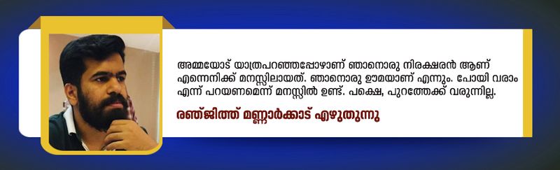 അമ്മയോട് യാത്രപറഞ്ഞപ്പോഴാണ് ഞാനൊരു നിരക്ഷരൻ ആണ് എന്നെനിക്ക് മനസ്സിലായത്. ഞാനൊരു ഊമയാണ് എന്നും. 'പോയി വരാം' എന്ന് പറയണമെന്ന് മനസ്സിൽ ഉണ്ട്. പക്ഷെ, പുറത്തേക്ക് വരുന്നില്ല. അമ്മയോട് പറയാനുള്ളത് കണ്ണുകൾ പറയുന്നുണ്ടായിരുന്നു. ഒഴുകിയിറങ്ങിയ കണ്ണീരിലൂടെ...