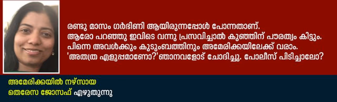 ദേശാന്തരം. രണ്ട് അമ്മമാര്, രണ്ട് കുഞ്ഞുങ്ങള്...അമേരിക്കയില് നഴ്സായ തെരേസ ജോസഫ് എഴുതുന്നു