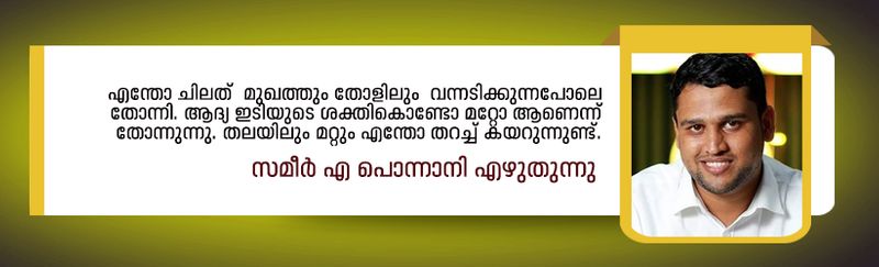'വെട്ടി പൊളിക്ക്, വേഗമെടുക്ക്' എന്നൊക്കെ ആരോ പറയുന്നുണ്ട്. ഒരു സഫാരി വാൻ ഞങ്ങളുടെ വണ്ടിക്ക് മുകളിൽ വന്ന് ഇരുന്നതാണ് സീൻ. അവിടെ ഓടിക്കൂടിയ ആളുകൾ ഞങ്ങളെ ആശുപത്രിയിലെത്തിച്ചു. മുഖത്ത് എന്തോ ഭാരമുള്ള വസ്തു ഇരിക്കുന്നത് പോലെ... അതിനിടയ്ക്ക് ഞാൻ ഒന്ന് രണ്ട് തവണ രക്തം ശർദ്ധിച്ചു.