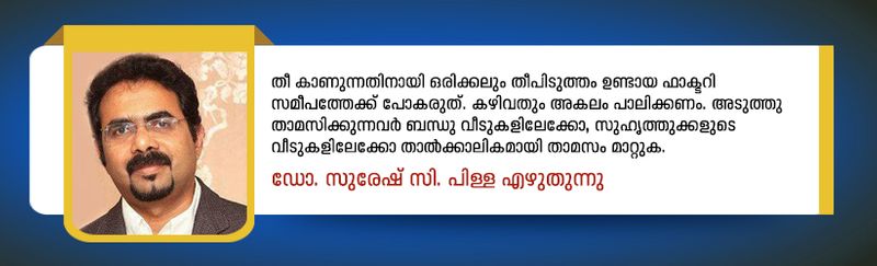 തീ കാണുന്നതിനായി ഒരിക്കലും തീപിടിത്തം ഉണ്ടായ ഫാക്ടറിയുടെ സമീപത്തേക്ക് പോകരുത്. കഴിവതും അകലം പാലിക്കണം. അടുത്തു താമസിക്കുന്നവർ ബന്ധു വീടുകളിലേക്കോ, സുഹൃത്തുക്കളുടെ വീടുകളിലേക്കോ താൽക്കാലികമായി താമസം മാറ്റുക. തീ കത്തി തീർന്നാൽ, പുക അന്തരീക്ഷ വായുവും ആയി കലർന്ന് അപകട സാദ്ധ്യത കുറയും, അപ്പോൾ തിരികെ സുരക്ഷിതമായി വരാം. ഫാക്ടറി ജീവനക്കാർ, ഫയർ ഫൈറ്റേഴ്സ്, ആരോഗ്യ പരിസ്ഥിതി പ്രവർത്തകർ തുടങ്ങിയവർ കത്തിയ ഫാക്ടറിയുടെ സമീപത്തേക്ക് പോകുമ്പോഴും വേണ്ട വ്യക്തിഗത സുരക്ഷാ ക്രമീകരണങ്ങൾ (PPE) ഇല്ലാതെ പോകരുത്.