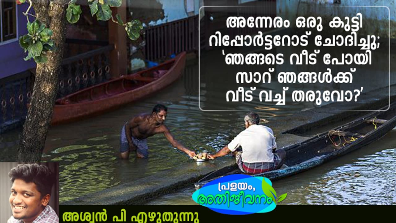 പിറ്റേ ദിവസം, ആയപ്പോൾ എന്റെ കയ്യും കാലും ചൊറിഞ്ഞു തടിക്കാൻ തുടങ്ങി. റിപ്പോർട്ടർ സംഗീത് ചേട്ടന്റെ കാല് വളംകടികൊണ്ട് നിലത്ത് തൊടാൻ പറ്റാത്ത അവസ്ഥ ആയി. ഡോക്ടറെ കണ്ട ശേഷം വീണ്ടും പണിക്കിറങ്ങി. നിറഞ്ഞ് തുടങ്ങിയ ക്യാമ്പുകളിലേക്കാണ് ആദ്യം പോയത് അപ്പോളേക്കും എന്റെ വീട്ടിലുള്ളവരും ക്യാമ്പിലേക്ക് മാറിയിരുന്നു. ആളുകളോട് കാര്യങ്ങൾ ചോദിച്ചറിയുമ്പോൾ താഴെ നിന്ന് ഒരു കുട്ടി റിപ്പോർട്ടറുടെ ഷർട്ടിൽ പിടിച്ച് വലിച്ചുകൊണ്ട് ചോദിച്ചു 'സാറേ... ഞങ്ങടെ വീട് പോയി സാറ് ഞങ്ങൾക്ക് വീട് വച്ച് തരുവോ?' അവന്റെ നേരെ മൈക്ക് നീട്ടി. 'ഞങ്ങടെ വീട് മുഴുവൻ മുങ്ങി. എല്ലാം ഒഴുകിപ്പോയി.' ഞാൻ ചെവിയിൽനിന്നും ഹെഡ്സെറ്റ് ഊരി മാറ്റി. പ്രായപൂർത്തിയായ ഒരാളെ പോലെ അവൻ അപ്പോഴും സംസാരിക്കുന്നുണ്ടായിരുന്നു.