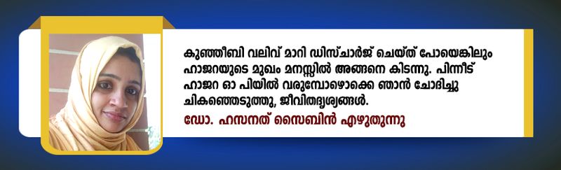 കുഞ്ഞീബി വലിവ് മാറി ഡിസ്ചാര്ജ് ചെയ്ത് പോയെങ്കിലും ഹാജറയുടെ മുഖം മനസ്സില് അങ്ങനെ കിടന്നു. പിന്നീട് ഹാജറ ഓ പിയില് വരുമ്പോഴൊക്കെ ഞാന് ചോദിച്ചു ചികഞ്ഞെടുത്തു, ജീവിതദൃശ്യങ്ങള്.
