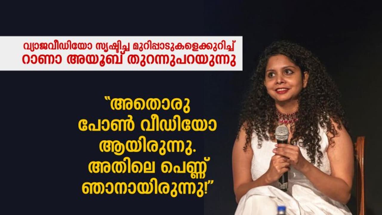 ഗുജറാത്ത് കലാപം മൂടിവെക്കാന് സര്ക്കാര് നടത്തിയ ശ്രമങ്ങളെ തുറന്നുകാണിക്കുന്ന' ഗുജറാത്ത് ഫയല്സ്: അനാട്ടമി ഓഫ് എ കവറപ്പ്' എന്ന പുസ്തകത്തിലൂടെ ശ്രദ്ധേയയായ മാധ്യമപ്രവര്ത്തക റാണാ അയ്യൂബ് താന് കുറച്ചുകാലമായി നേരിടുന്ന കൊടുംപീഡനങ്ങളെക്കുറിച്ച് തുറന്നുപറയുന്നു. ഡീപ് ഫേക്ക് എന്ന പുത്തന് സാങ്കേതിക വിദ്യ ഉപയോഗിച്ച് റാണാ അയ്യൂബിന്േറതെന്ന പേരില് വ്യാജ പോണ് വീഡിയോകള് പ്രചരിപ്പിച്ചതിനെ തുടര്ന്നാണ് അവര് മാനസികമായി തകര്ന്നുപോയത്. ആ ദിവസങ്ങളെക്കുറിച്ച് ഹഫിങ്ടണ് പോസ്റ്റ് പ്രതിനിധി ലൂസി പാഷ റോബിന്സണ് റാണാ അയ്യൂ ബുമായി സംസാരിച്ച് തയ്യാറാക്കിയ കുറിപ്പിന്റെ സ്വതന്ത്ര വിവര്ത്തനം.